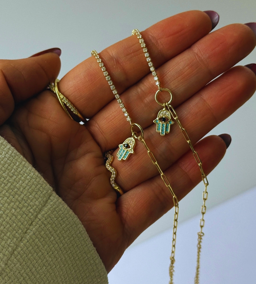Wunderschöne Handkette, die ich täglich trage – auch bei der Arbeit. Keine Verfärbungen, nur schöner Glanz.