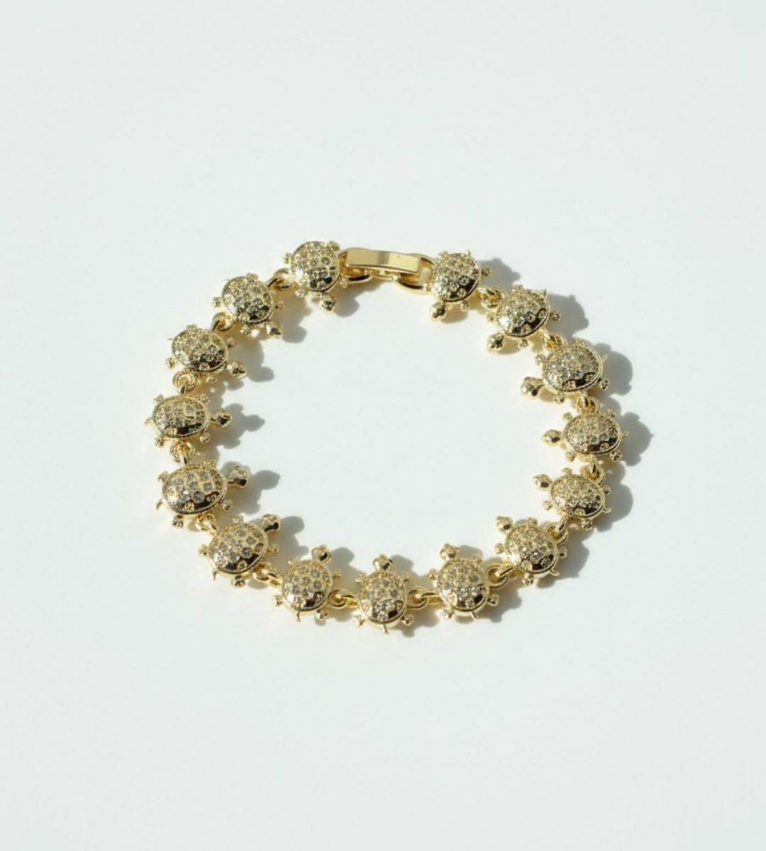 Feiere zeitlose Eleganz mit unserem Armband „Turtle Charm“. Das zarte, verspielte Armband ist mit einem liebevoll gestalteten Schildkröten-Anhänger versehen, der für Langlebigkeit, Geduld und Glück steht. Die verstellbare Kette sorgt für eine perfekte Passform, während das polierte Finish jedem Handgelenk einen dezenten Glanz verleiht. Solo getragen wirkt es minimalistisch, in Kombination mit anderen Schmuckstücken wird es zum stilvollen Statement.