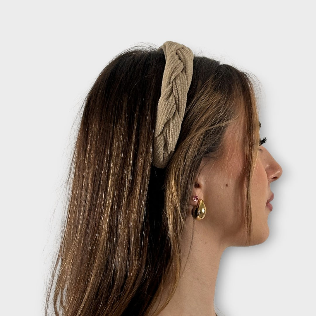 Stilvolles und komfortables Accessoire, um Ihren Alltagslook aufzupeppen? Unser Haarreif ist die perfekte Wahl! Mit seinem geflochtenen Design und der gepolsterten Stoffkonstruktion bietet er ganztägigen Komfort und Stil.